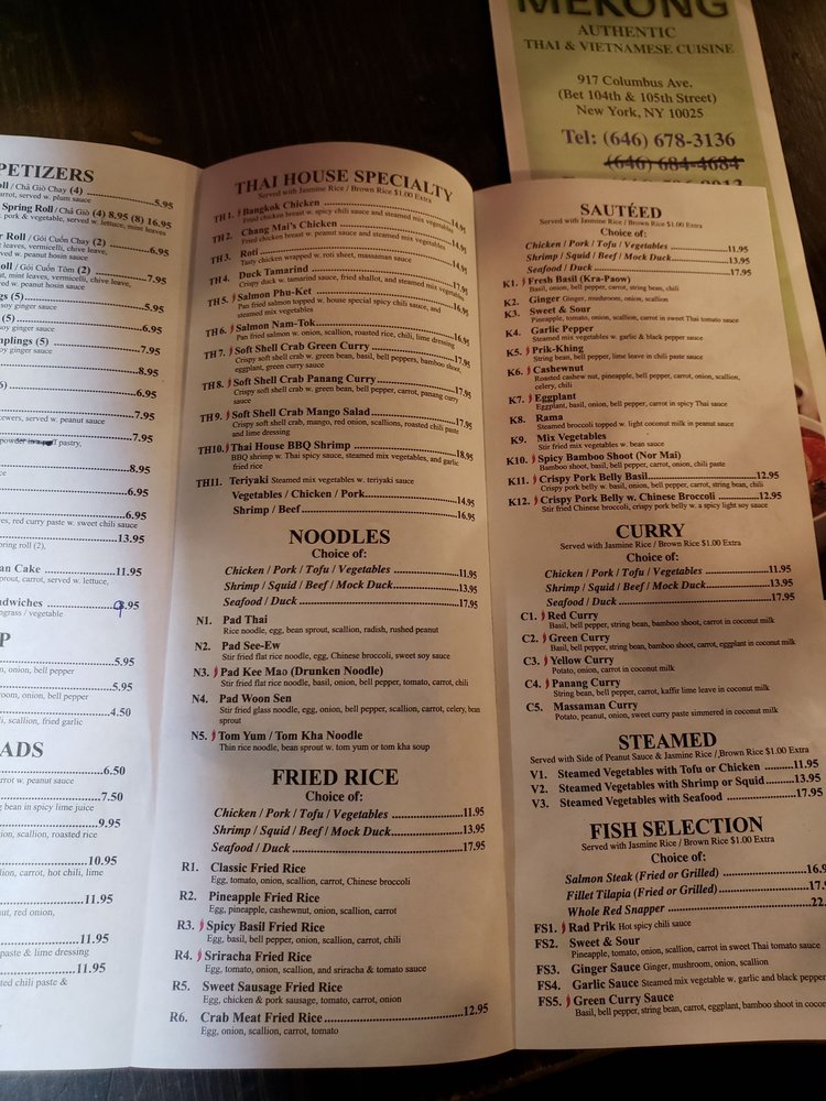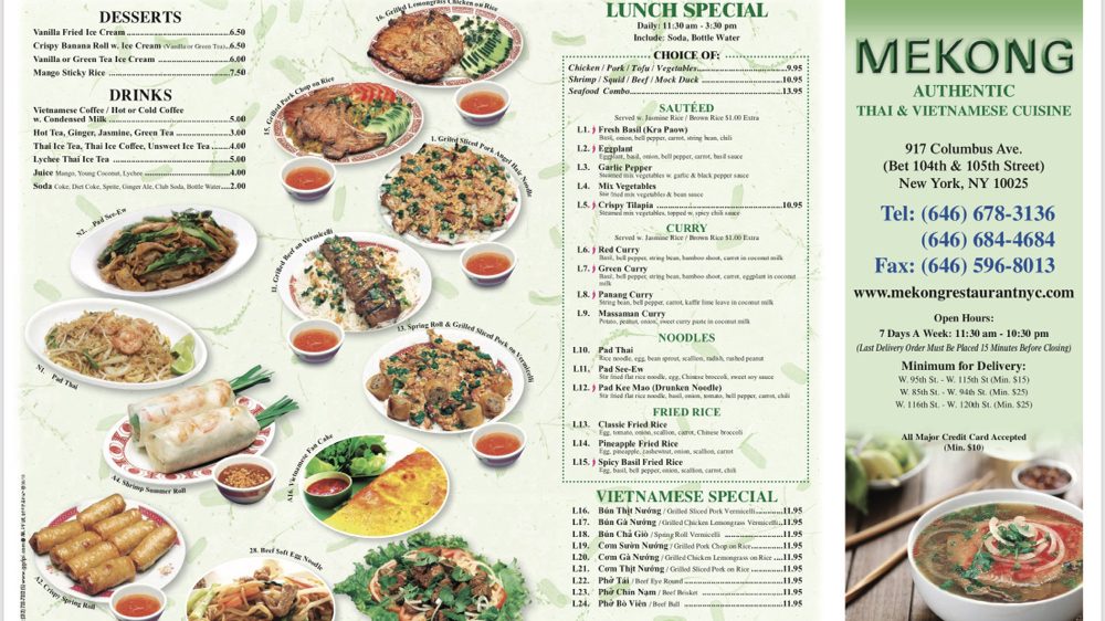 Introducing Mekong, a captivating eatery nestled at 917 Columbus Ave, New York, NY, that artfully blends the bold flavors of Thai and Vietnamese cuisine. This casual yet classy establishment offers an inviting atmosphere, complete with convenient delivery and takeout options, making it a perfect choice for any occasion.